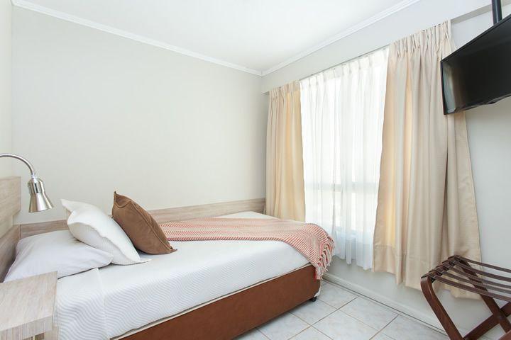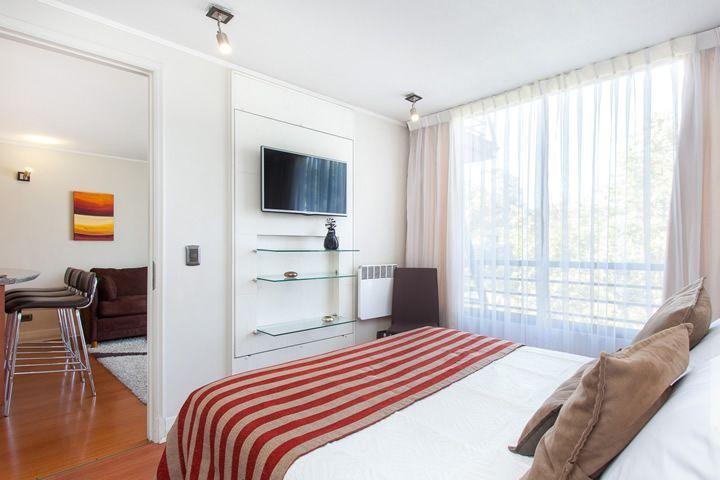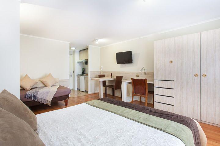 Un ambiente, cama matrimonial, televisor con TV cable, mesa comedor con 2 sillas, kitchenette completa (microondas, cocina eléctrica, hervidor de agua, tostador eléctrico y frigobar), Aire Acondicionado, calefacción durante meses de invierno, baño privado y conexión a Internet Wifi 5G.